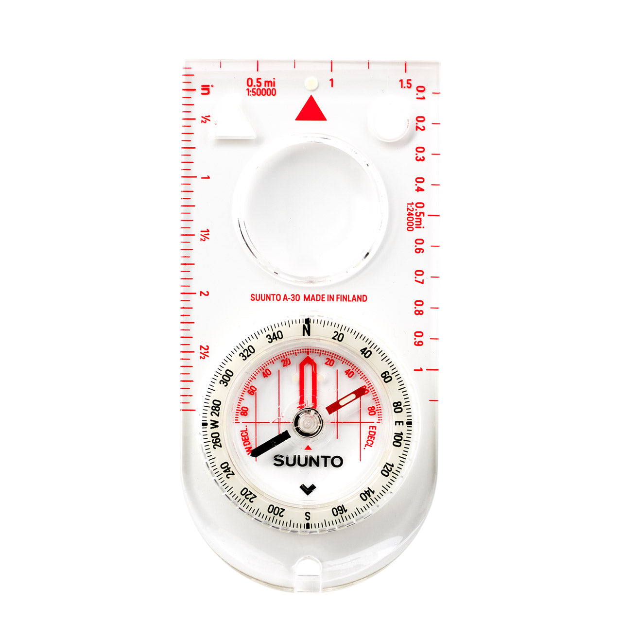 Suunto A-30 is a reliable baseplate compass for navigating and surviving in extreme conditions. Depending on the variant, A-30 comes with Metric UTM scales and inch ruler or USGS UTM scales.